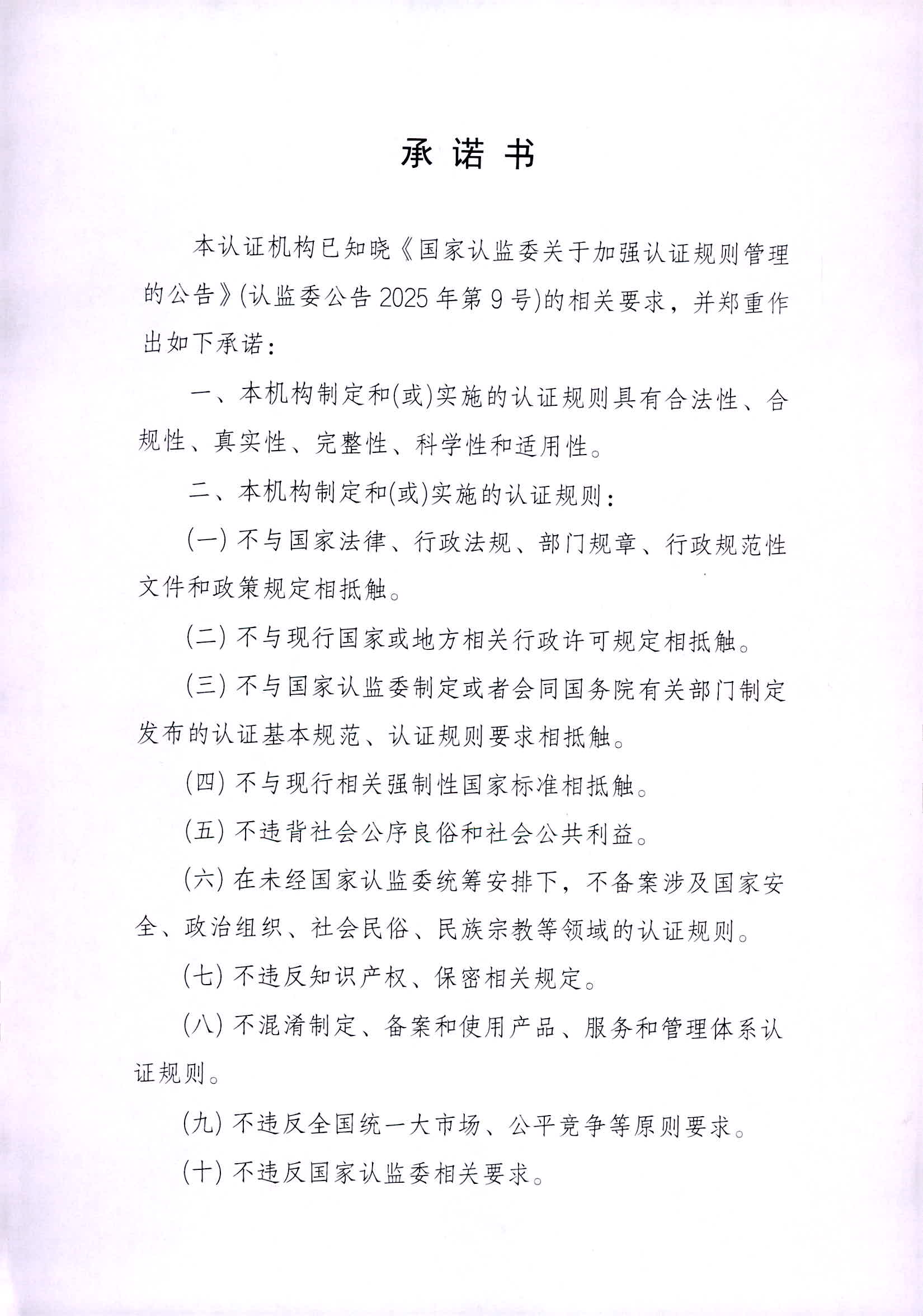 公正性承诺