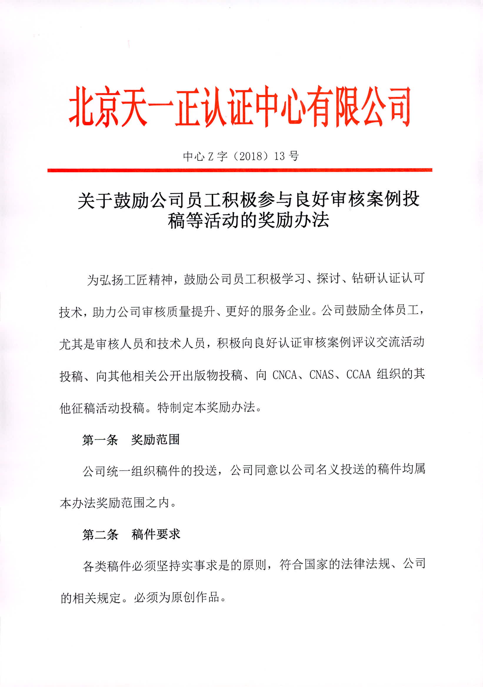 关于鼓励公司员工积极参与良好审核案例投稿等活动的将在办法中心Z字(2018)13号