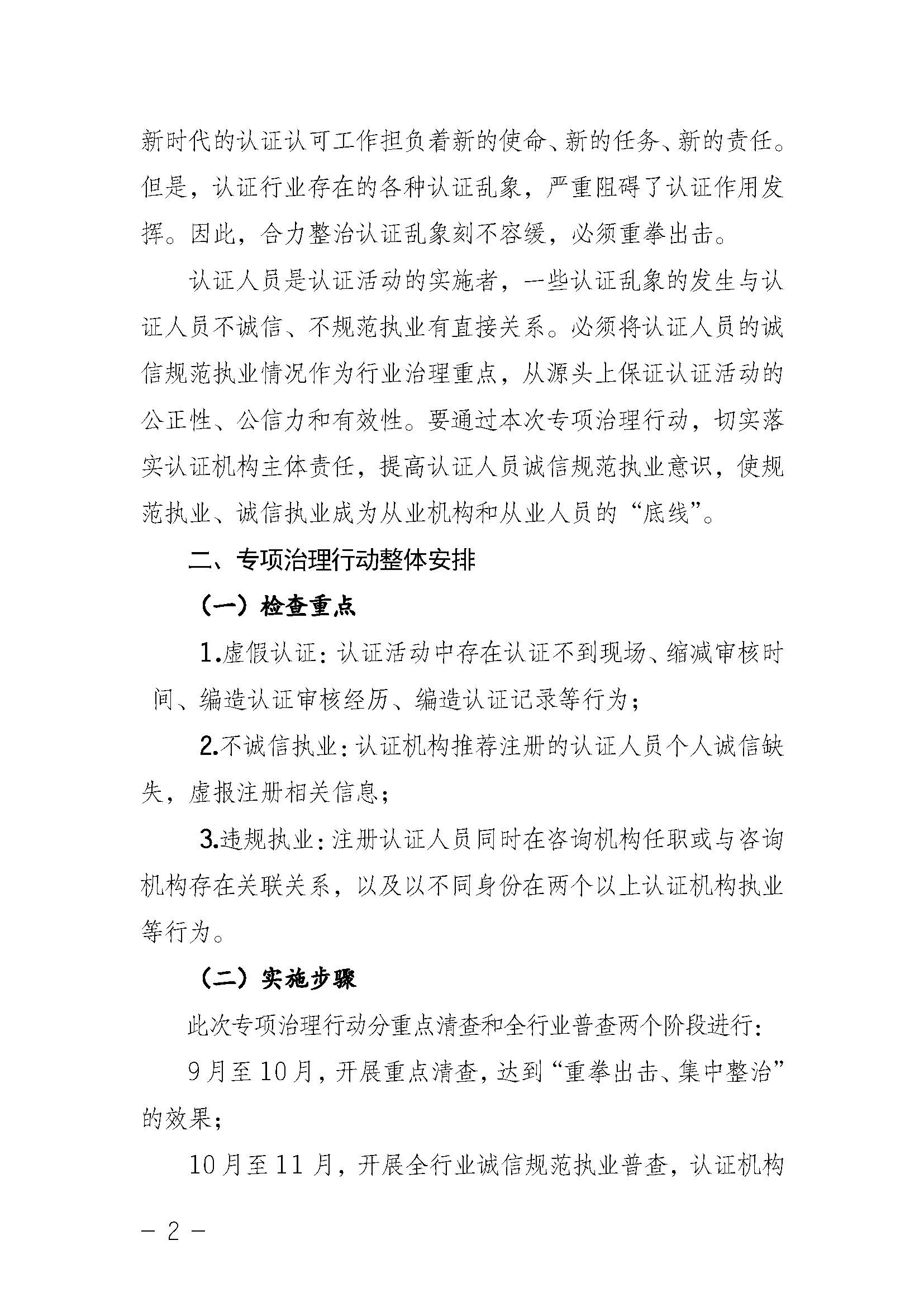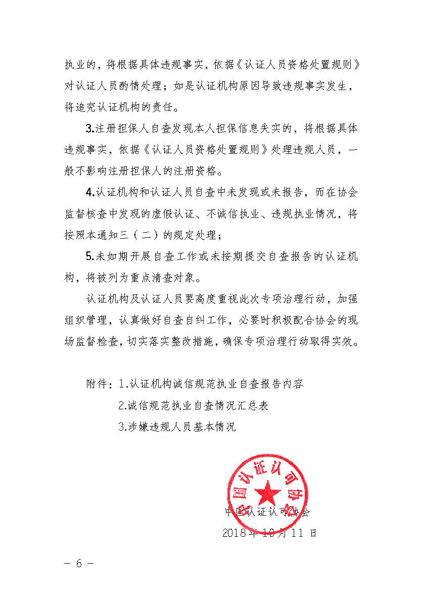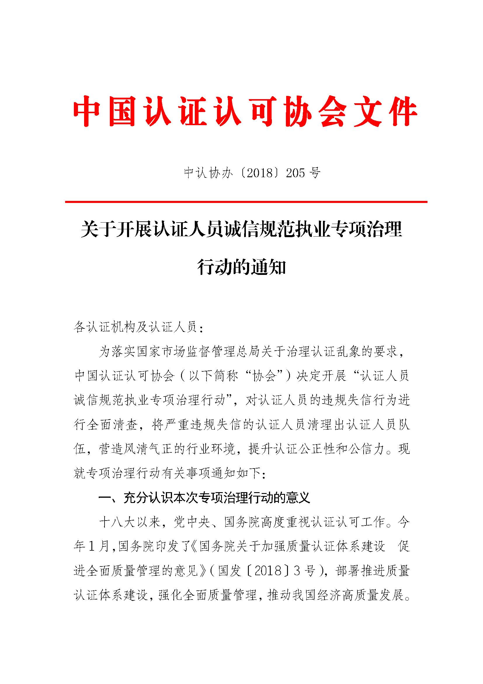 关于开展认证人员诚信规范执业专项治理行动的通知