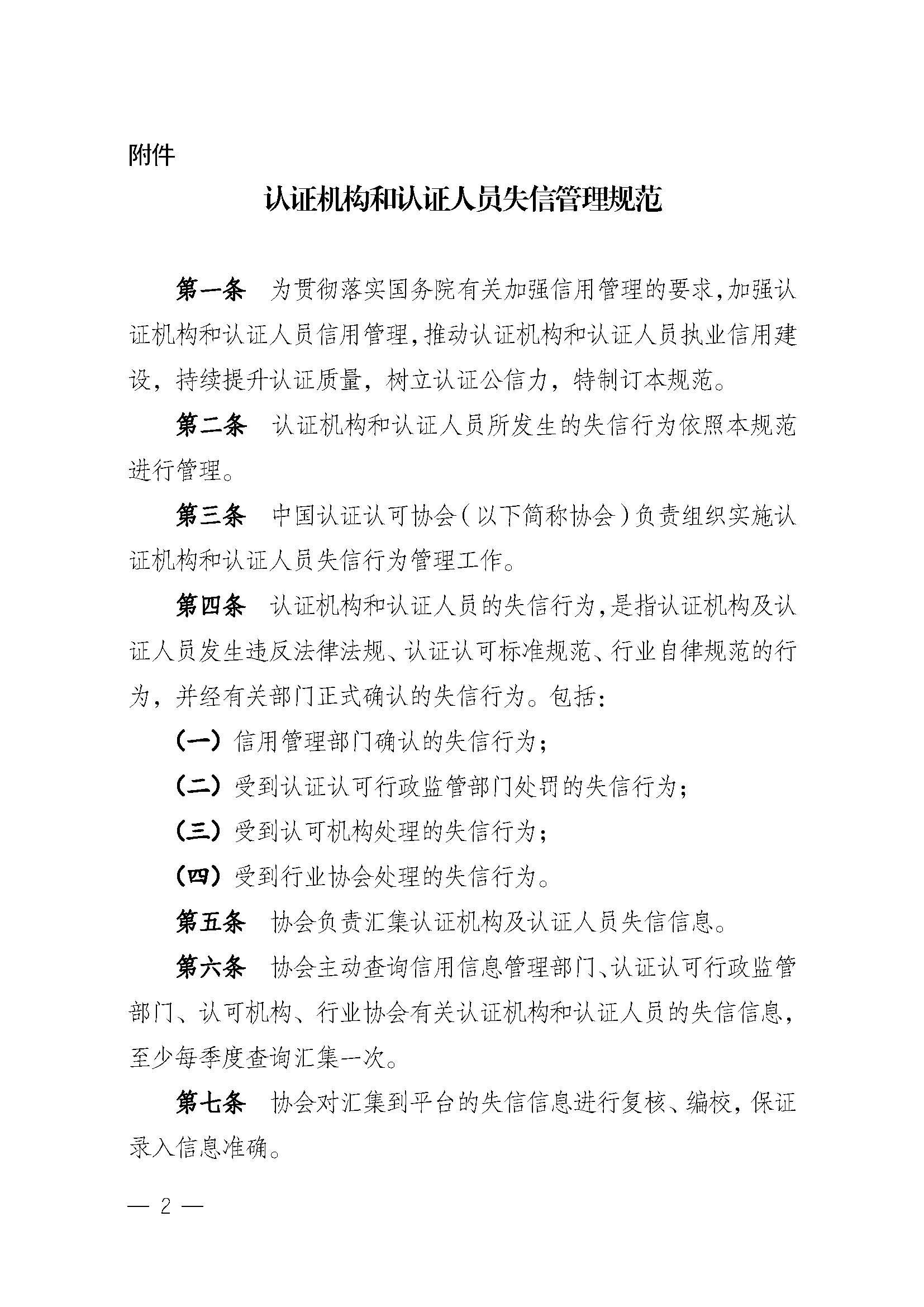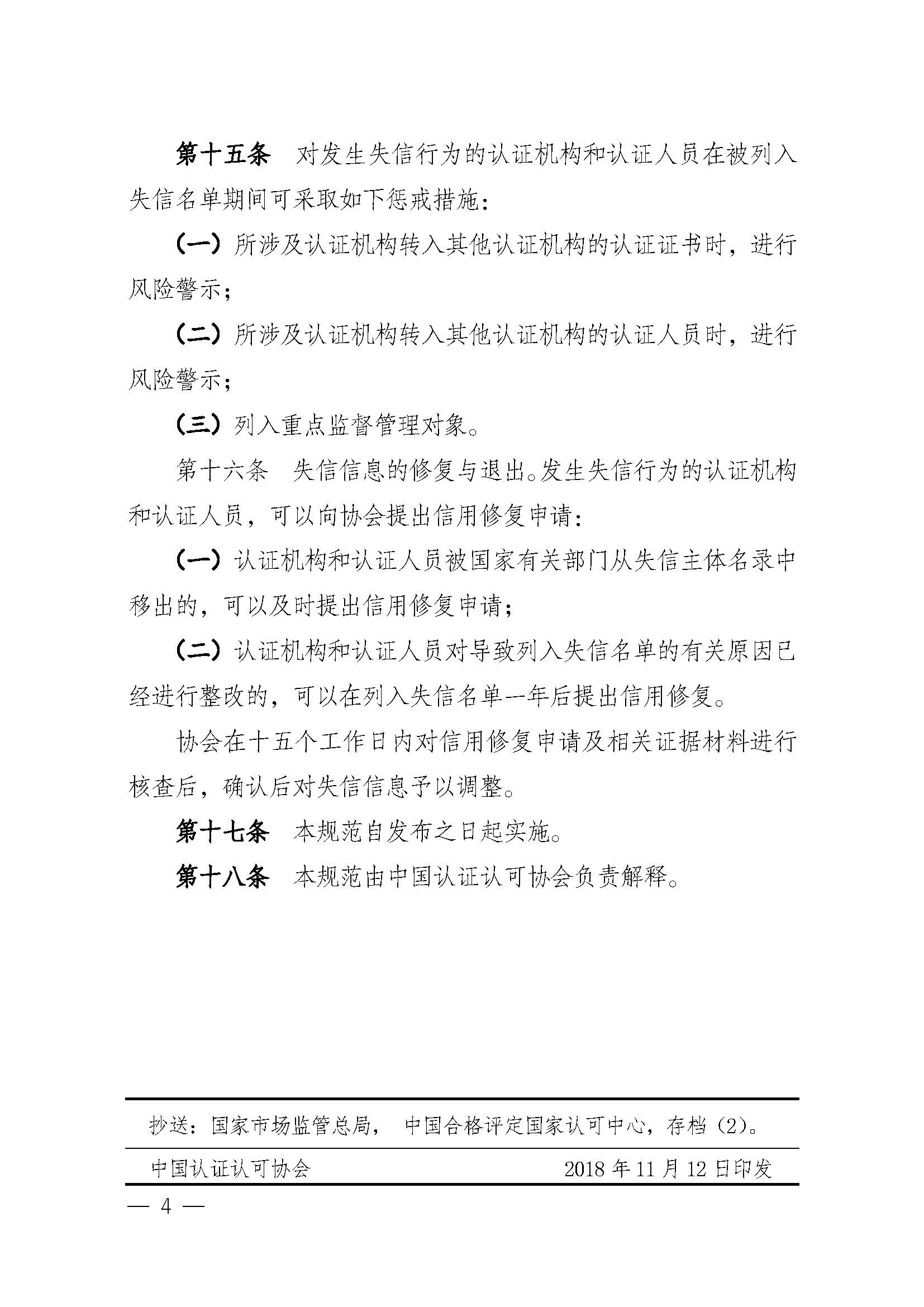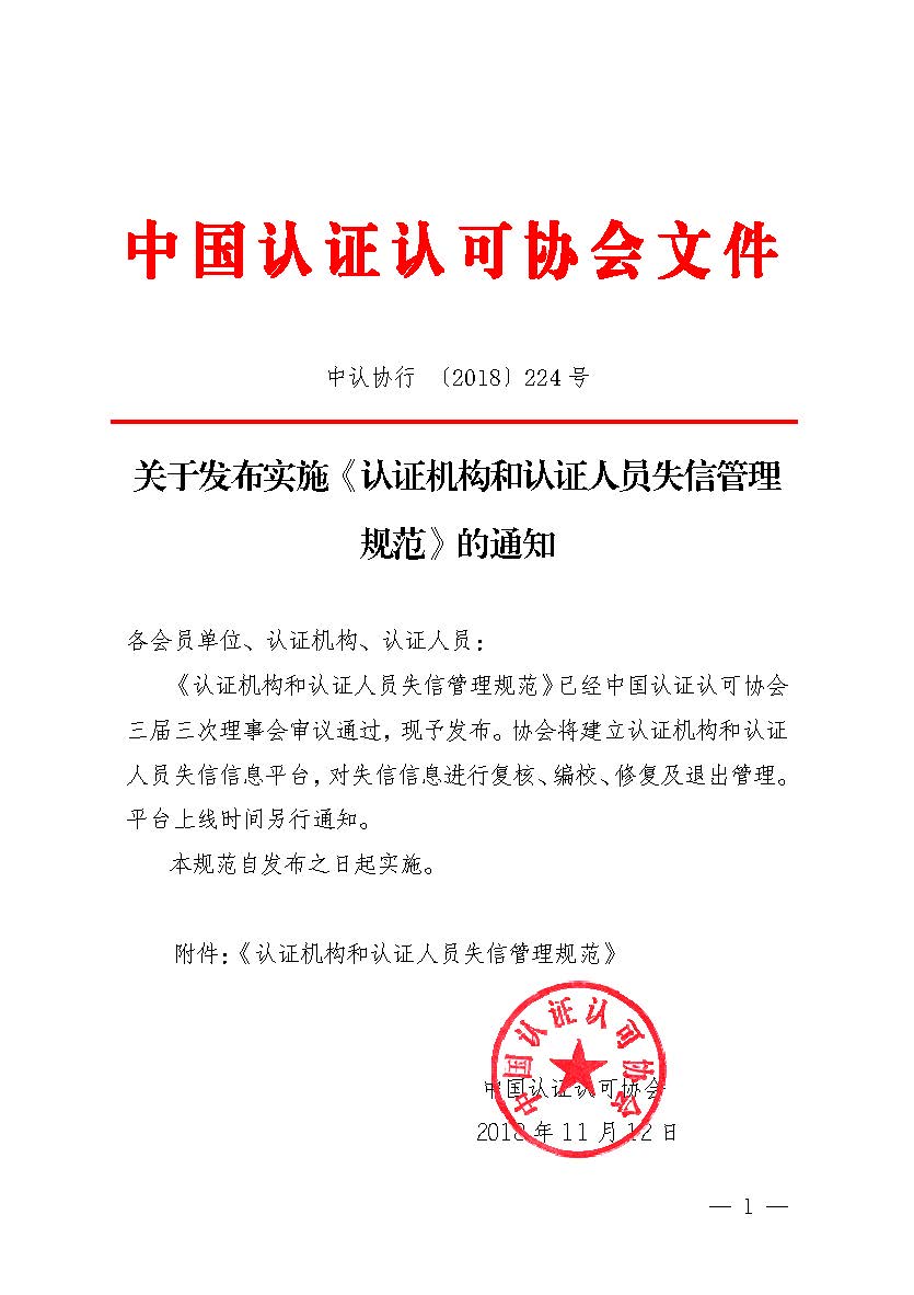 关于发布实施《认证机构和认证人员失信管理规范》