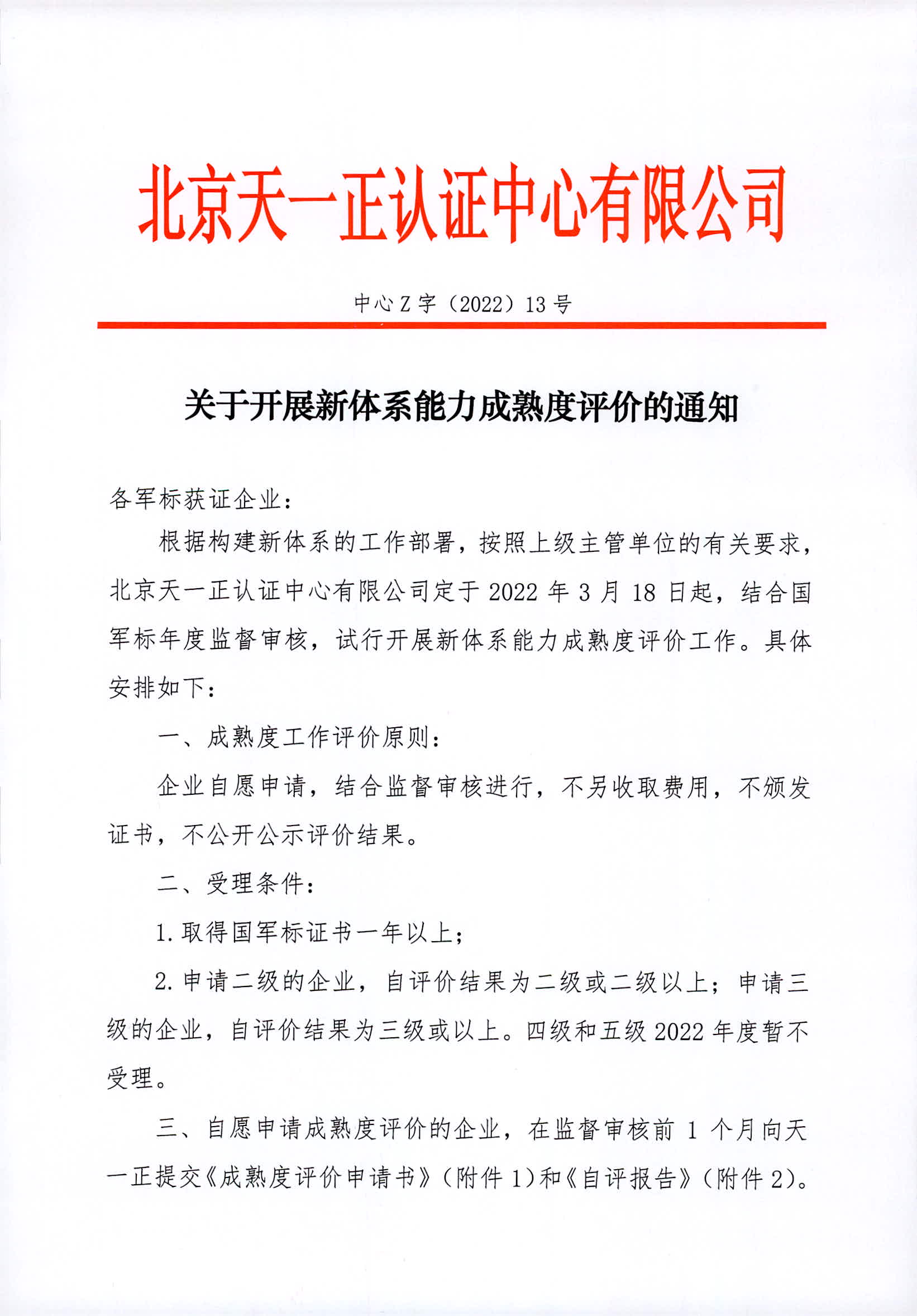 关于开展新体系能力成熟度评价的通知