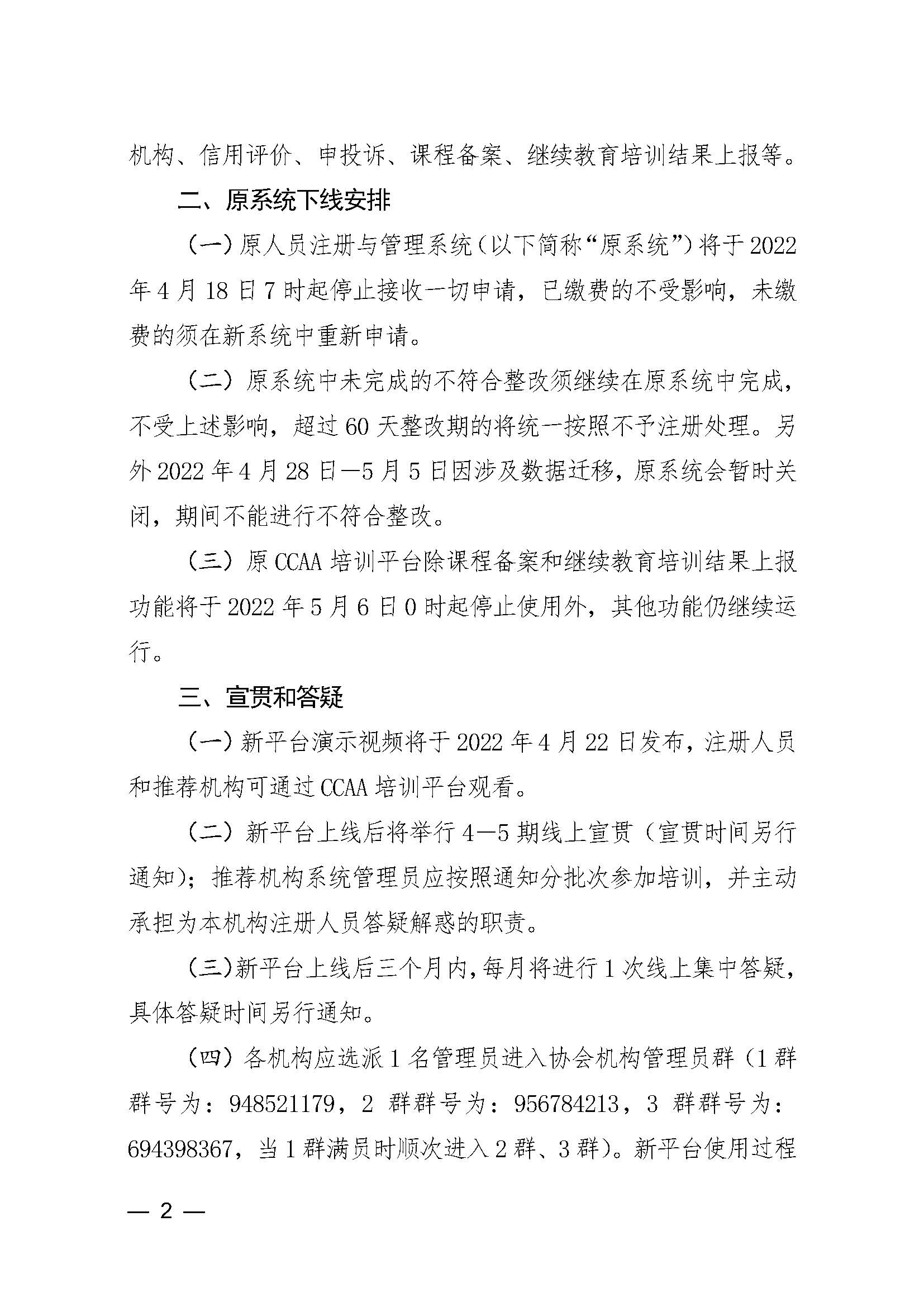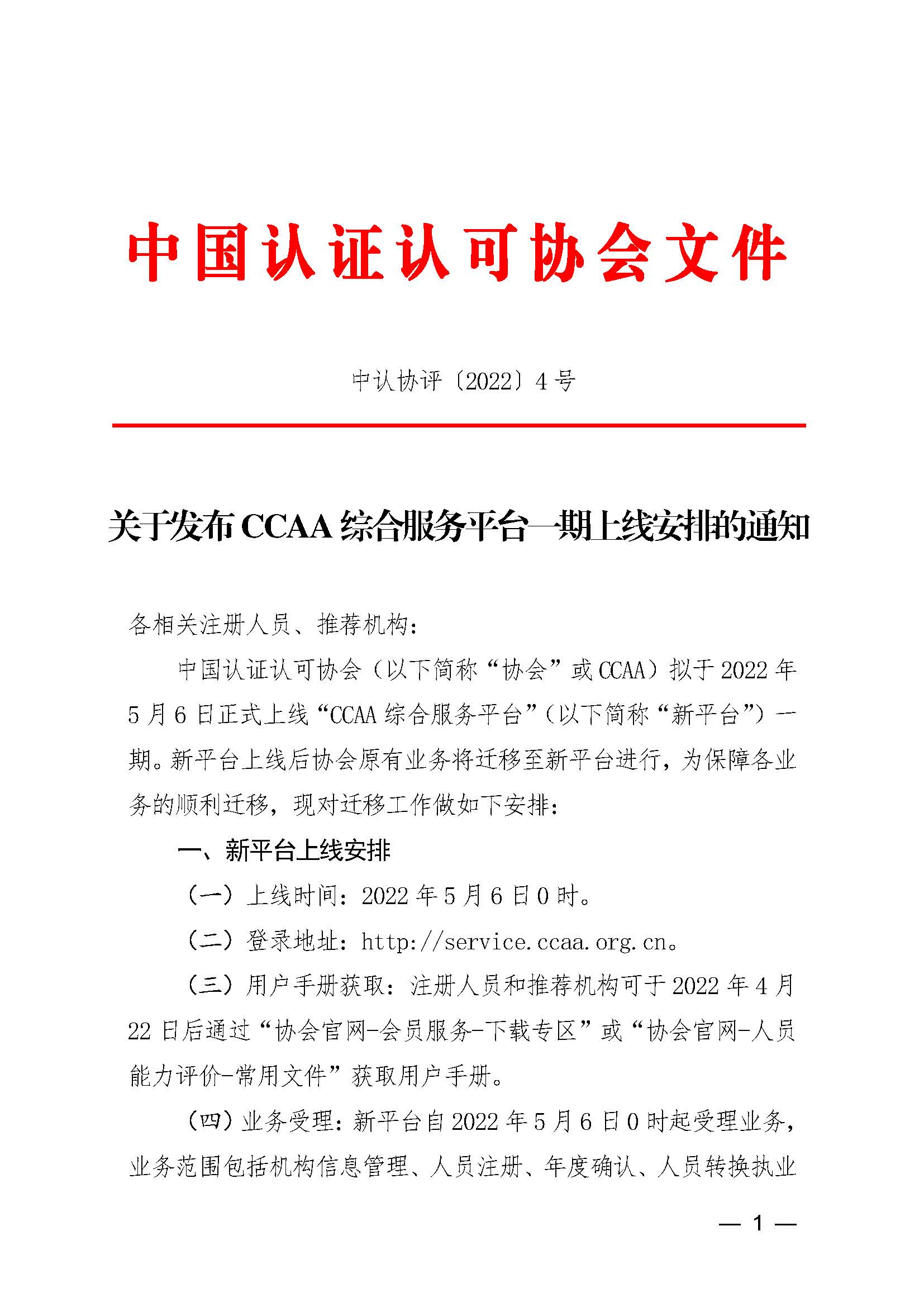 关于发布CCAA 综合服务平台一期上线安排的通知