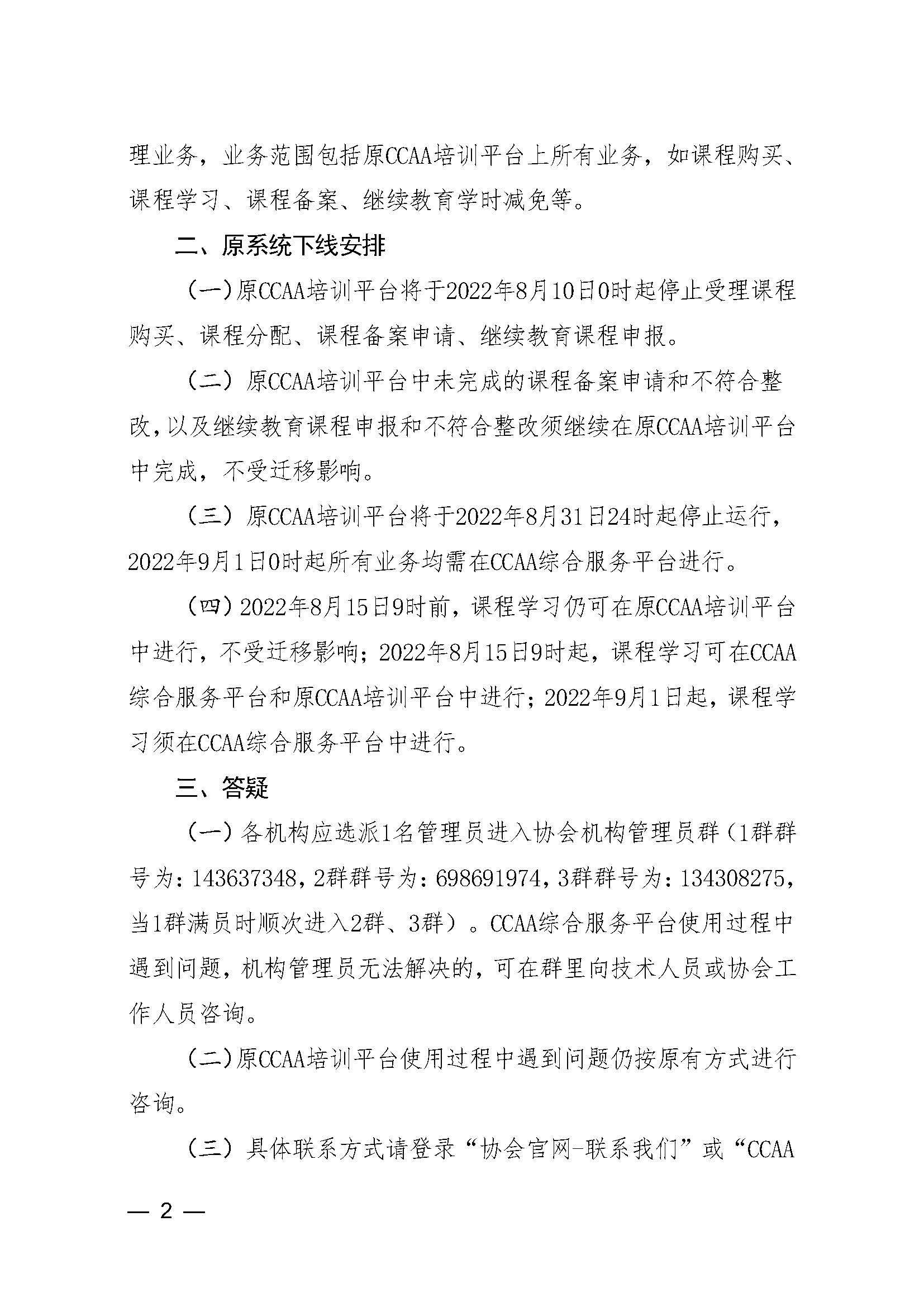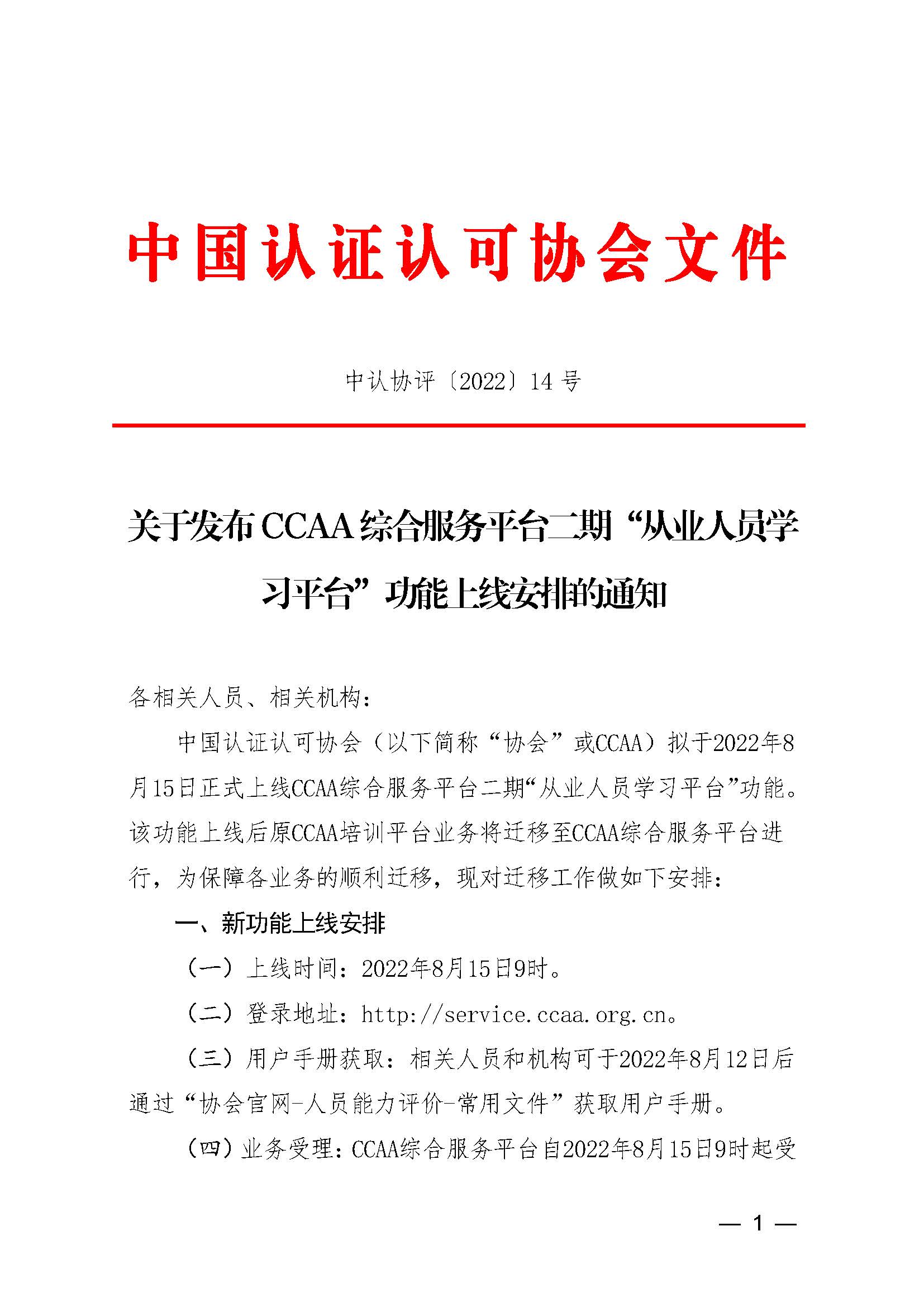 关于发布 CCAA 综合服务平台二期“从业人员学习平台”功能上线安排的通知