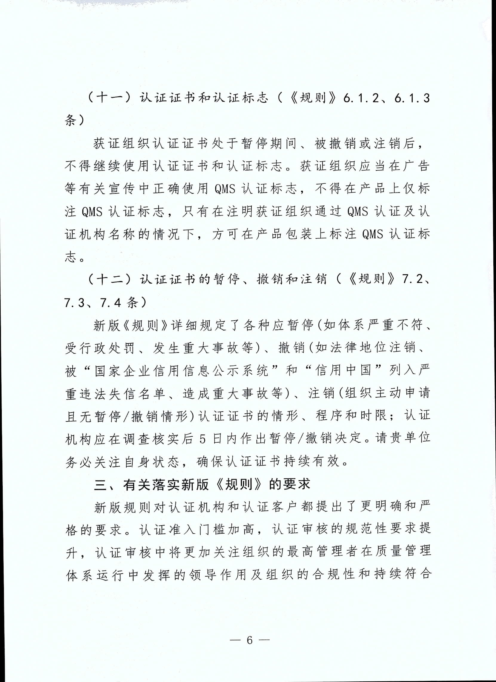 国家认监委新版《质量管理体系认证规则》有关要求的通知